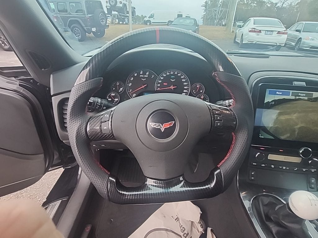 Black 2011 Chevrolet Corvette Grand Sport 3LT RWD 6-Speed Manual 6.2L V8 SFI 18" x 9.5" Fr & 19" x 12" Rr Chrome Alum. Wheels, 18" x 9.5" Front & 19" x 12" Rear Painted Aluminum Wheels, 4-Wheel Disc Brakes, 6-Way Power Front Passenger Seat Adjuster, 7 Speakers, ABS brakes, Air Conditioning, Alloy wheels, AM/FM radio: XM, AM/FM Stereo w/CD Player/Navigation, Auto-dimming door mirrors, Auto-dimming Rear-View mirror, Automatic temperature control, Battery Protection Package, Bluetooth® For Phone, Bumpers: body-color, CD player, Compass, Convertible roof lining, Delay-off headlights, Driver & Front Passenger Heated Seats, Driver door bin, Driver vanity mirror, Dual front impact airbags, Dual front side impact airbags, Dual Mode Performance Exhaust, Electronic Stability Control, Emergency communication system: OnStar Directions & Connections, Four wheel independent suspension, Front anti-roll bar, Front Bucket Seats, Front Center Armrest, Front dual zone A/C, Front fog lights, Front License Plate Bracket, Front reading lights, Front Sport Bucket Seats, Fully automatic headlights, Glass rear window, Head-Up Display, Headrest Crossed Flag Embroidery, Heated door mirrors, High-Intensity Discharge Headlights, Illuminated entry, Leather Seating Surfaces, Leather Shift Knob, Leather steering wheel, Low tire pressure warning, Manual Tilt/Power Telescopic Steering Column, Memory Package, Occupant sensing airbag, Outside temperature display, Panic alarm, Passenger door bin, Passenger vanity mirror, Perforated Leather Seating Surfaces, Power door mirrors, Power driver seat, Power Folding Convertible Top, Power Lumbar/Bolster Seat Adjusters, Power steering, Power windows, Preferred Equipment Group 3LT, Radio data system, Rear anti-roll bar, Rear Compartment Area Cargo Net, Rear window defroster, Remote keyless entry, Security system, Speed control, Speed-sensing steering, Spoiler, Sport steering wheel, Steering wheel mounted audio controls, Tachometer, Tilt steering wheel, Traction control, Trip computer, Universal Home Remote, Variably intermittent wipers, Voltmeter, XM Radio.