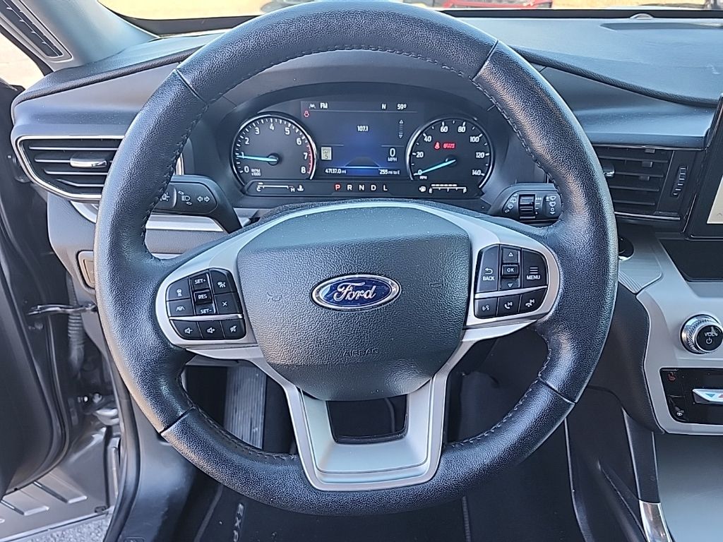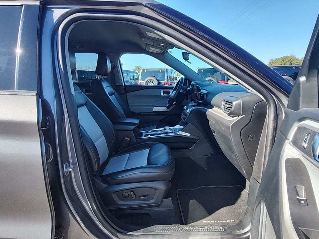 Carbonized Gray Metallic 2023 Ford Explorer XLT 4WD 10-Speed Automatic 2.3L EcoBoost I-4 4WD, 3.58 Non-Limited-Slip Rear Axle Ratio, 3rd row seats: bench, 4-Wheel Disc Brakes, 4G LTE Wi-Fi Hotspot Credit, 6 Speakers, ABS brakes, Acoustic-Laminated Front Side Windows, Air Conditioning, Alloy wheels, AM/FM radio: SiriusXM, AM/FM Stereo, Auto High-beam Headlights, Auto Start-Stop Removal (DISC), Automatic temperature control, Brake assist, Bumpers: body-color, Class IV Trailer Tow Package, Compass, Delay-off headlights, Driver door bin, Driver vanity mirror, Dual Chrome Exhaust Tips, Dual front impact airbags, Dual front side impact airbags, Electronic Stability Control, Emergency communication system: SYNC 3 911 Assist, Equipment Group 202A, Evasive Steering Assist, Exterior Parking Camera Rear, Ford Co-Pilot360 Assist+, FordPass Connect, Four wheel independent suspension, Front anti-roll bar, Front Bucket Seats, Front Center Armrest, Front dual zone A/C, Front reading lights, Fully automatic headlights, Heated ActiveX Captain's Chairs, Heated door mirrors, Heated front seats, Heated Steering Wheel, Heated Unique Cloth Captain's Chairs, Illuminated entry, Intelligent Adaptive Cruise Control, Knee airbag, Leather steering wheel, LED Fog Lamps, Low tire pressure warning, Occupant sensing airbag, Outside temperature display, Overhead airbag, Overhead console, Panic alarm, Passenger door bin, Passenger vanity mirror, Power door mirrors, Power driver seat, Power Liftgate, Power passenger seat, Power steering, Power windows, Rear air conditioning, Rear anti-roll bar, Rear reading lights, Rear window defroster, Rear window wiper, Remote keyless entry, Remote Start System, Roof rack: rails only, SecuriCode Keyless Entry Keypad, Security system, Speed control, Speed Sign Recognition, Speed-sensing steering, Speed-Sensitive Wipers, Split folding rear seat, Spoiler, Steering wheel mounted audio controls, SYNC 3 Communications & Entertainment System, SYNC 3/Apple CarPlay/Android Auto, Tachometer, Telescoping steering wheel, Tilt steering wheel, Traction control, Trip computer, Variably intermittent wipers, Voice-Activated Touchscreen Navigation System, Wheels: 18" 5-Spoke Silver-Painted Aluminum, Wheels: 20" 10-Spoke Carbonized Gray-Painted, XLT Sport Appearance Package.