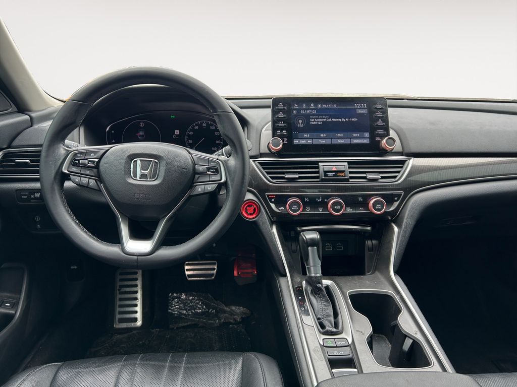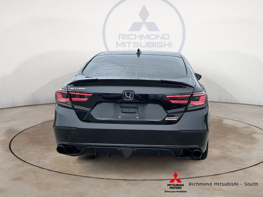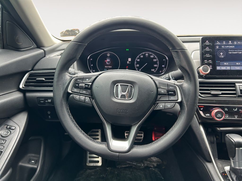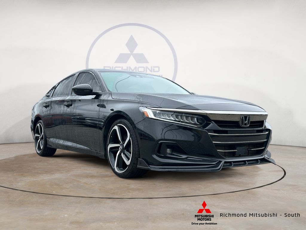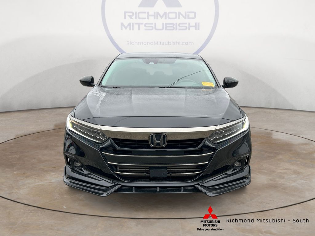 Black 2021 Honda Accord Sport Special Edition FWD CVT 1.5T I4 DOHC 16V Turbocharged VTEC Leather, 4-Wheel Disc Brakes, 8 Speakers, ABS brakes, Adaptive Cruise Control: Adaptive Cruise Control (ACC) with Low-Speed Follow, Air Conditioning, AM/FM radio, Apple CarPlay/Android Auto, Auto High-beam Headlights, Automatic temperature control, Brake assist, Bumpers: body-color, Delay-off headlights, Driver door bin, Driver vanity mirror, Dual front impact airbags, Dual front side impact airbags, Electronic Stability Control, Emergency communication system: HondaLink, Exterior Parking Camera Rear, Forward collision: Collision Mitigation Braking System (CMBS) + FCW mitigation, Four wheel independent suspension, Front anti-roll bar, Front Bucket Seats, Front Center Armrest, Front dual zone A/C, Front fog lights, Front reading lights, Fully automatic headlights, Heated door mirrors, Heated Front Bucket Seats, Heated front seats, Illuminated entry, Knee airbag, Lane Departure Warning System, Leather Shift Knob, Leather steering wheel, Leather-Trimmed Seats, Low tire pressure warning, Occupant sensing airbag, Outside temperature display, Overhead airbag, Overhead console, Panic alarm, Passenger vanity mirror, Power door mirrors, Power driver seat, Power passenger seat, Power steering, Power windows, Radio data system, Radio: 180-Watt AM/FM Audio System, Rear anti-roll bar, Rear seat center armrest, Rear window defroster, Remote keyless entry, Security system, Speed control, Speed-sensing steering, Split folding rear seat, Spoiler, Steering wheel mounted audio controls, Tachometer, Telescoping steering wheel, Tilt steering wheel, Traction control, Trip computer.