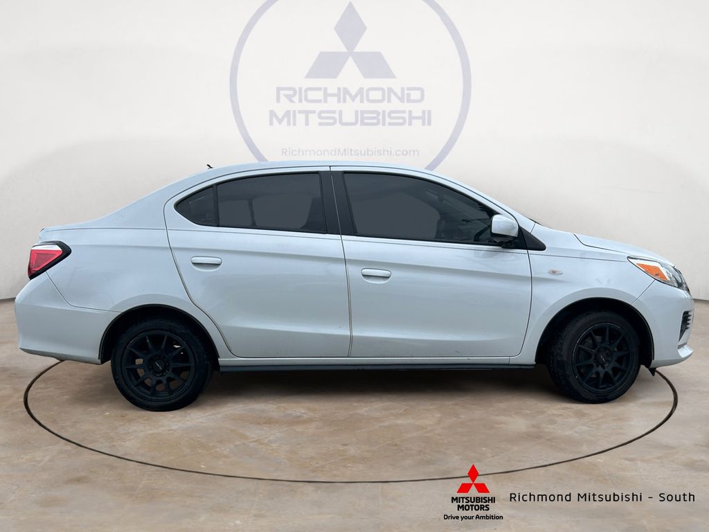 Silver 2024 Mitsubishi Mirage G4 ES FWD CVT 1.2L 3-Cylinder DOHC MIVEC CLEAN AUTOCHECK, ALLOY WHEELS, 4 Speakers, ABS brakes, Air Conditioning, AM/FM radio, Android Auto & Apple CarPlay, Automatic temperature control, Brake assist, Bumpers: body-color, Delay-off headlights, Driver door bin, Driver vanity mirror, Dual front impact airbags, Dual front side impact airbags, Electronic Stability Control, Exterior Parking Camera Rear, Fabric Seat Trim, Front anti-roll bar, Front Bucket Seats, Front reading lights, Front wheel independent suspension, Illuminated entry, Knee airbag, Low tire pressure warning, Occupant sensing airbag, Overhead airbag, Panic alarm, Passenger door bin, Passenger vanity mirror, Power door mirrors, Power steering, Power windows, Radio: 7.0" Smartphone-Link Display Audio (SDA), Rear seat center armrest, Rear window defroster, Remote keyless entry, Speed control, Spoiler, Steering wheel mounted audio controls, Tachometer, Tilt steering wheel, Traction control, Trip computer, Variably intermittent wipers, Wheels: 14" Steel w/Wheel Covers.