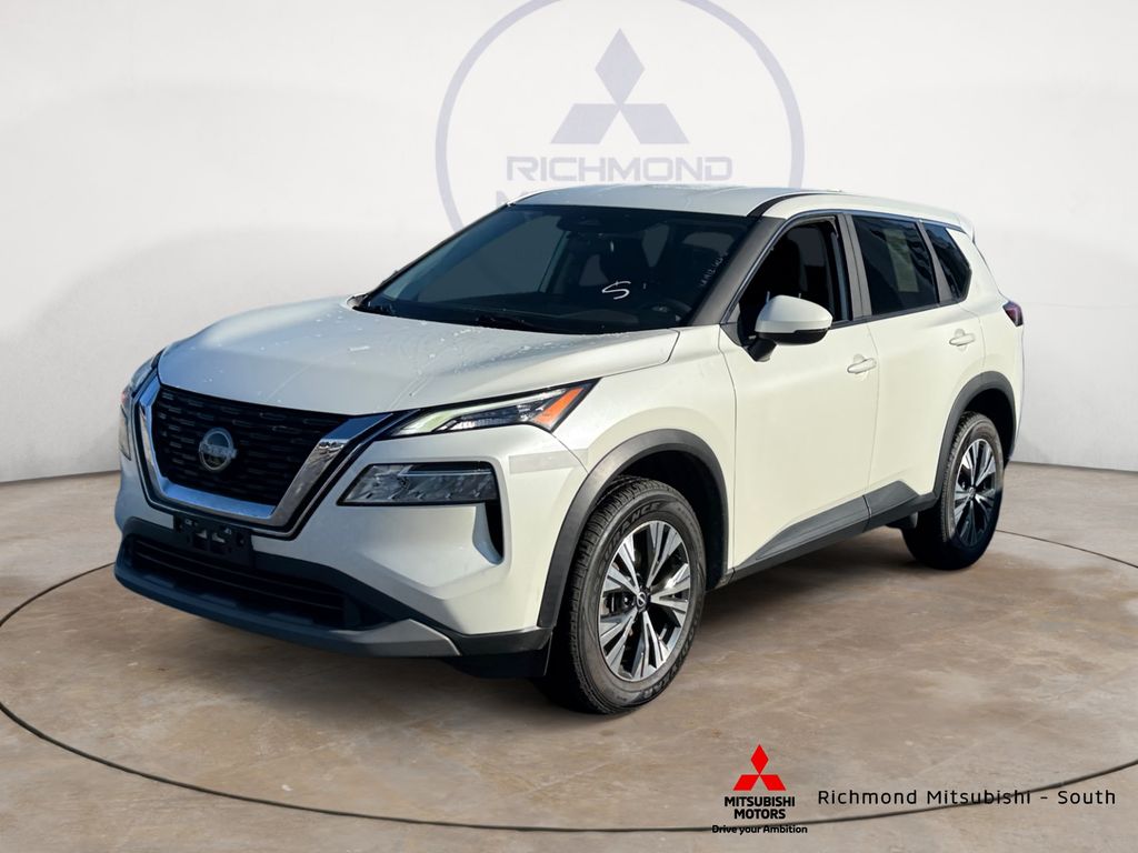 Pearl White Tricoat 2023 Nissan Rogue SV AWD CVT with Xtronic 1.5L I3 Turbocharged DOHC 12V LEV3-ULEV50 201hp AWD, 18" Aluminum Alloy Wheels, 4-Wheel Disc Brakes, 5.604 Axle Ratio, 6 Speakers, ABS brakes, Air Conditioning, Alloy wheels, AM/FM Radio, AM/FM radio: SiriusXM, Auto High-beam Headlights, Automatic temperature control, Brake assist, Bumpers: body-color, Cloth Seat Trim, Delay-off headlights, Driver door bin, Driver vanity mirror, Dual front impact airbags, Dual front side impact airbags, Electronic Stability Control, Emergency communication system: NissanConnect Services, First Aid Kit, Floor Mats w/1-Piece Cargo Area Protector, Four wheel independent suspension, Front anti-roll bar, Front Bucket Seats, Front Center Armrest, Front dual zone A/C, Front reading lights, Fully automatic headlights, Heated door mirrors, Illuminated entry, Knee airbag, Low tire pressure warning, NissanConnect featuring Apple CarPlay and Android Auto, Occupant sensing airbag, Outside temperature display, Overhead airbag, Overhead console, Panic alarm, Passenger door bin, Passenger vanity mirror, Power door mirrors, Power driver seat, Power steering, Power windows, Radio data system, Rear anti-roll bar, Rear Parking Sensors, Rear seat center armrest, Rear side impact airbag, Rear window defroster, Rear window wiper, Remote keyless entry, Security system, Speed control, Speed-Sensitive Wipers, Split folding rear seat, Spoiler, Steering wheel mounted audio controls, Tachometer, Telescoping steering wheel, Tilt steering wheel, Traction control, Trip computer, Turn signal indicator mirrors, Variably intermittent wipers.